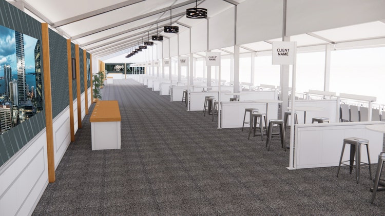 - Private climate-controlled tent with patio overlooking the 18th green